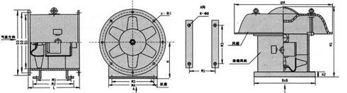| 注:D1、D2D、3、H、M3、M4、n-Φ1、4-Φ2參加風機外形尺寸表 |