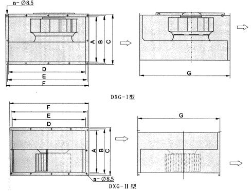 四、DXG型風機外形尺寸表(單位:mm) ![]()