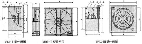 DFBZ-Ⅰ型為采用內轉子電機直聯傳動結構形式、DFBZⅡ型采用內轉子電機、皮帶傳動結構形式,DFBZⅢ型為采用外轉子電機直聯轉結構形式。可根據用戶要求時稱防腐防爆型。
