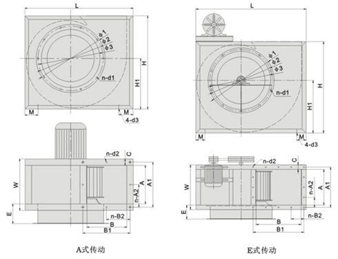 DDL-Ⅰ型風(fēng)機分A式直聯(lián)傳動和E式皮帶傳動兩種結(jié)構(gòu)型式,采用高效前傾多翼式離心葉輪,同一機號風(fēng)量耿大。配用防爆電機和鋁(不銹鋼)材質(zhì)葉輪,可制成防爆型。