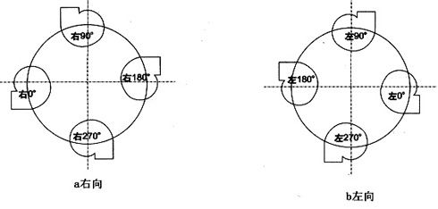 本系列風(fēng)機分A式直聯(lián)傳動和E式皮帶傳動,按葉輪旋轉(zhuǎn)方向分為左旋和右旋,旋轉(zhuǎn)方向從電機或皮帶輪側(cè)看為準,以出風(fēng)口分為00、900、1800、2700四種出風(fēng)方式,訂貨時需注明。